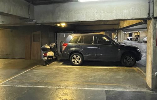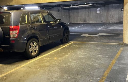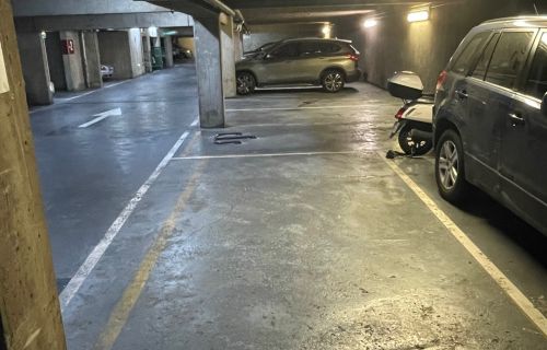 Place de parking près de l’ascenseur et du portail d’entrée du parking.