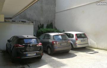 Une place de parking en extérieur (niveau 0), accessible par badge depuis la rue. L'accès et les manoeuvres sont particulièrement faciles. Sur la photo : place du milieu, à l'emplacement où est stationnée une Golf Plus grise.
