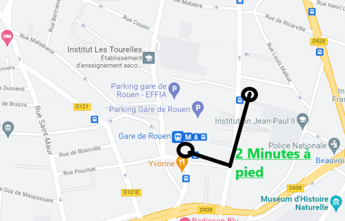 En face de la Maison du Notariat et à coté de l'Institution Jean Paul 2 ( JP2 Sup' ).