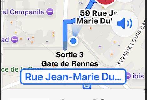 - située à 40 m (1' à pied) de l’entrée n°3 de la gare de Rennes (située devant le Café de Rennes, 12 place de la Gare) et à 400 m de la place Charles de Gaulle (Liberté, Les Champs Libres, ..)