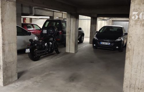 Location d'une place de parking couvert, en sous sol dans un immeuble sécurisé de longueur 4,90 x largeur 2,62 x hauteur 2,04 = 13 m². Située en plein centre ville du Raincy (93 340), avenue Thiers, 15 min à pied de la gare Le Raincy-Villemomble . Accès voiture par rampe, ouverture par télécommande.