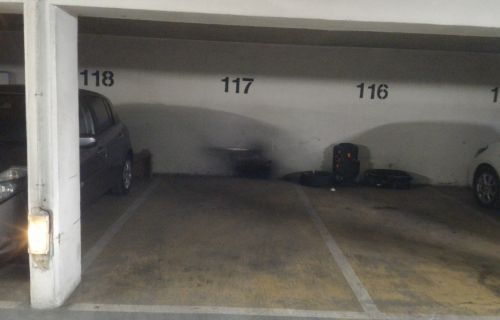 Place de parking souterrain accessible par un portail qui s'ouvre par télécommnde.