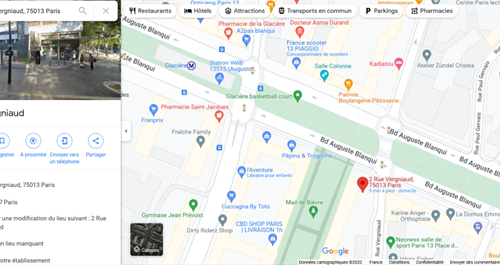 Parking pour citadine idéalement situé au 2 rue Vergniaud à 2 minutes du métro (ligne 6 - Glacière).