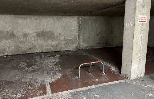 Place de parking (délimitée par marquage au sol) dans un parking souterrain.
