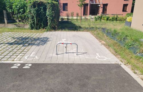 La place est munie d'une barrière de parking rabattable, normes PMR largeur 3m30.